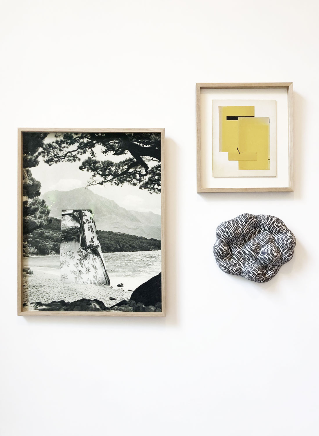 "Time does not pass but is overlapping", says Dominique Mercadal whose enamelled stoneware, accumulated strata that she striates or stamps, softens everything. She works on them in series and on the plate, a sort of template or sewing pattern, no doubt in memory of her first textile creations. Everywhere, graphic motifs saturate the surface which undulates and takes familial shapes: cloud, tree, wave... Dominique Mercadal's "faux-unis" deceive the eye which believes to see in these "pixelated" volumes colored of sand or soot, the pretty things that nature produces. Thus, these solitary sheeps riddled with dots, that one would think escaped from a Seurat painting, or these mountains, round-bosses dug with furrows like the Cairn of Gavrinis, syntheses between a plowed field and a Zen garden. The climate, a priori mild, is in crisis, and the catastrophe approaches: tsunami, charred trunk, mudslide.... In dreams or in real life, Dominique Mercadal comes across threatened landscapes. Her large dry basins attest to this: their source has dried up and on the stone, only the ripples remain of the water that once cascaded. For every void, there is a fullness in these clear and obscure pieces, "mounted" slowly, by chance or accident, so unpredictable is their material. Placed flat or on the wall, they are lands of contrasts.