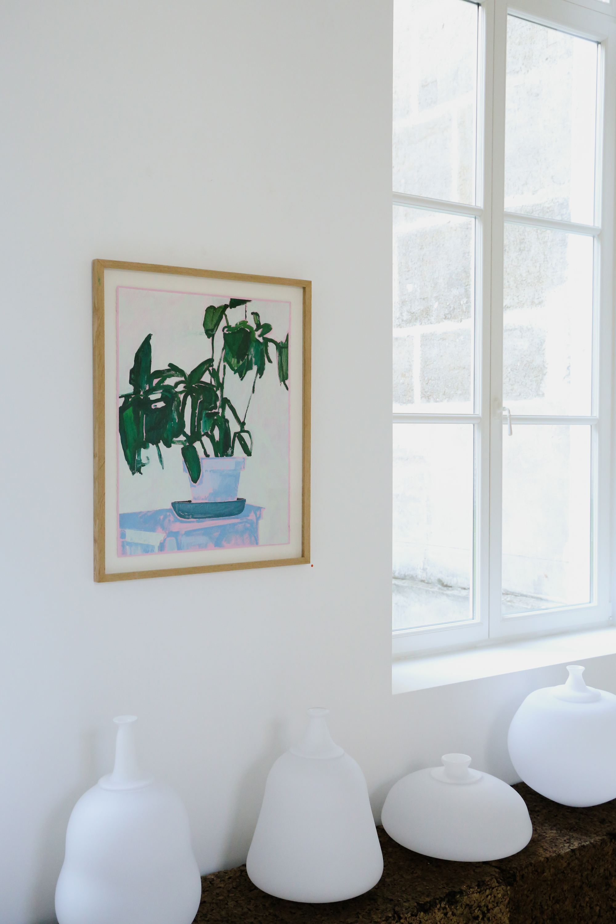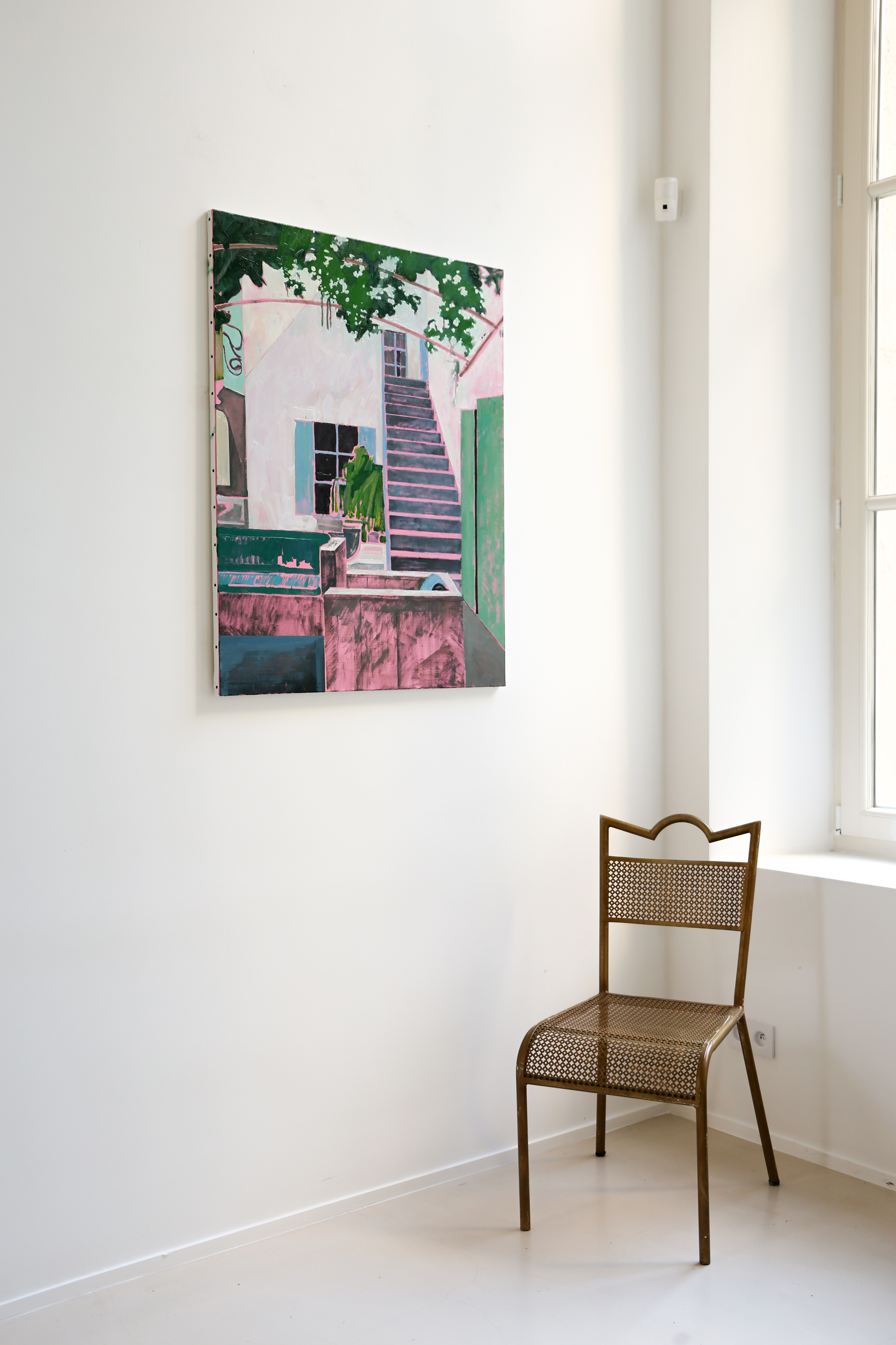 Light is central in his paintings, it comes from the background. He often begins by applying strong paints - pink, orange or fluorescent violet - all over the canvas and building his compositions in translucent layers, a method inspired by traditional Renaissance techniques. The vibrant, contrasting color of this underpainting becomes an essential element of McPhail's work and builds the composition.
