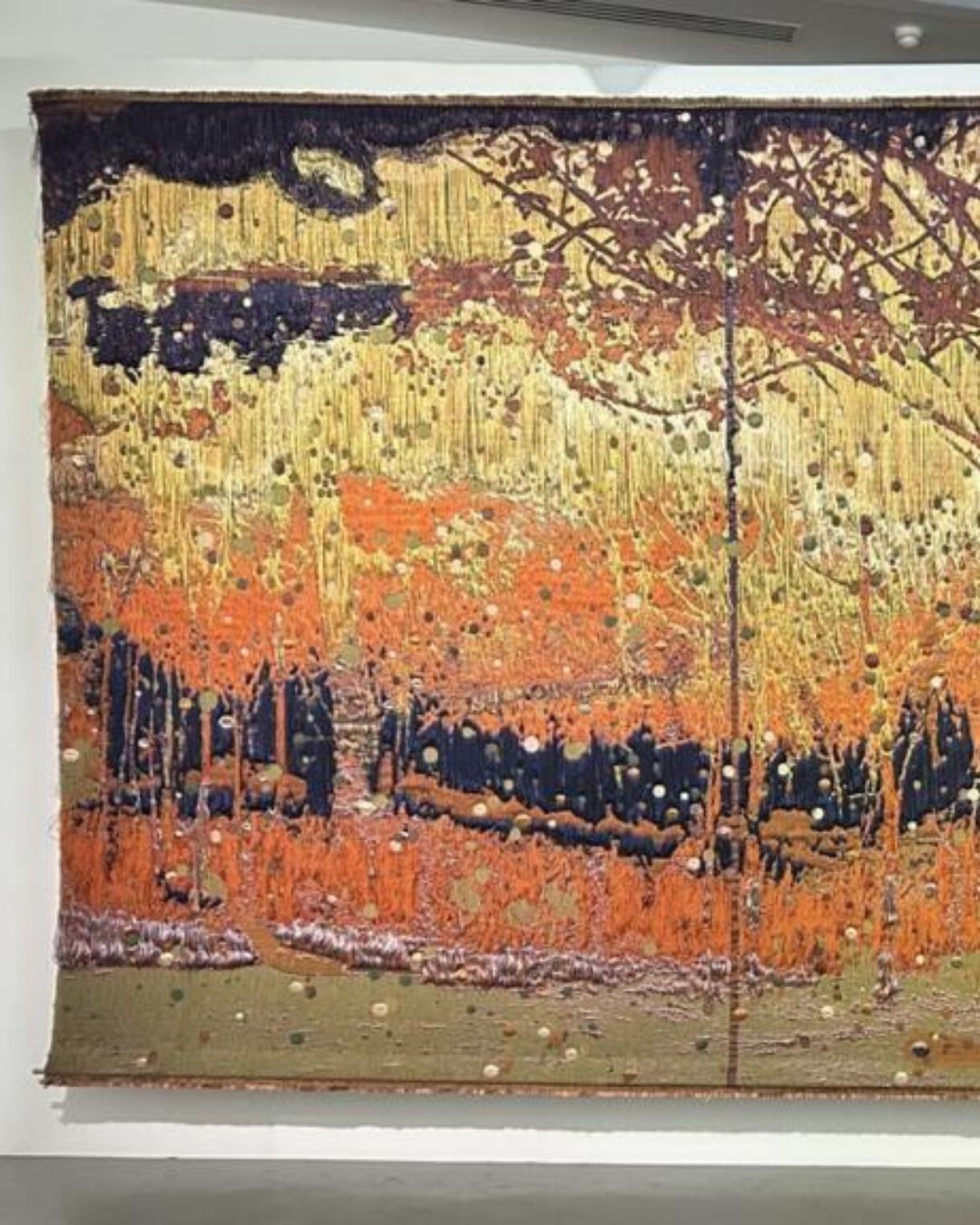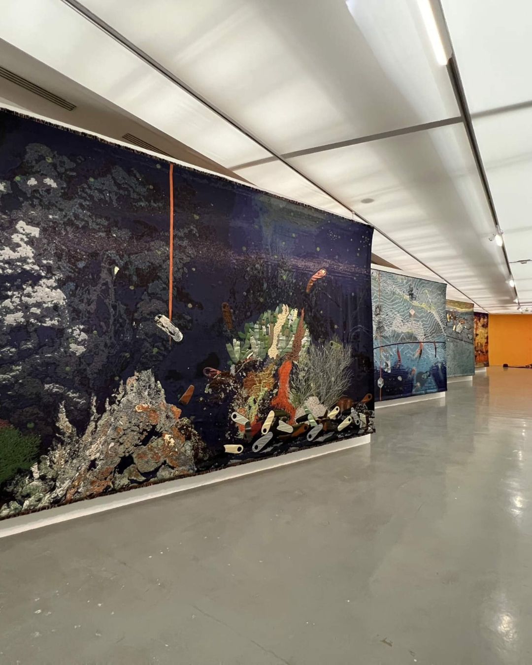 The galleries host monumental tapestries, delicate drawings, mineral sculptures, and installations in which earth, fabric, metal, and pigment engage in dialogue. Everything seems interconnected. Forms stretch, intersect, and transform, like sensitive maps linking distant territories.