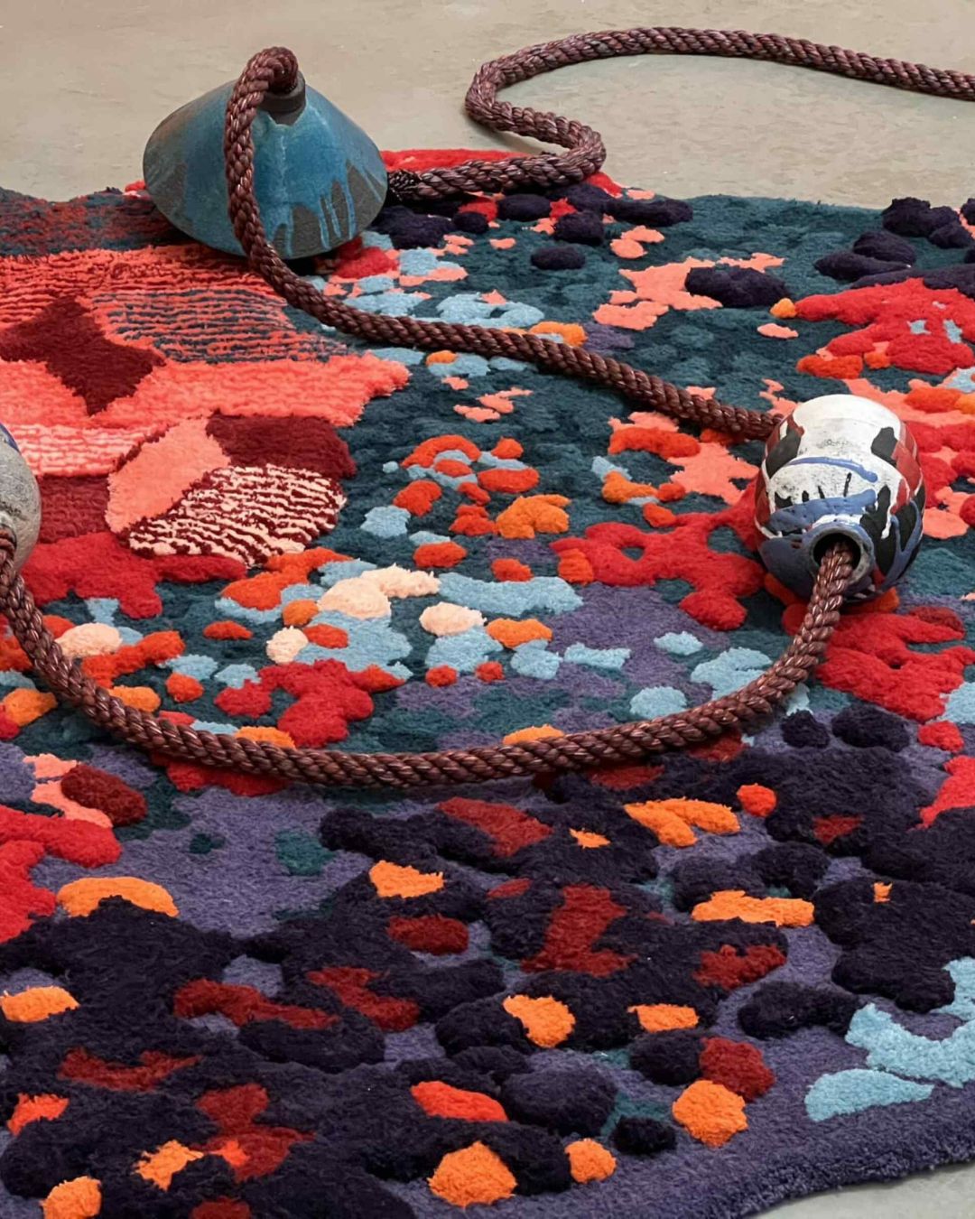 Then comes a particular sensation: that of a fragile yet resilient world. Otobong Nkanga speaks of ecology, exploitation, and invisible wounds without ever imposing a direct discourse. Everything is conveyed through material, through slowness, through attention to detail.