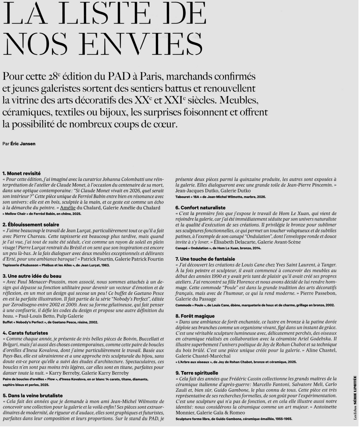 Many thanks to Les Echos Série Limitée for this inspiring article, and for highlighting Galerie Amélie du Chalard, accompanied by curator Johanna Colombatti, whose artistic curation reinterprets Claude Monet’s studio through a contemporary approach.