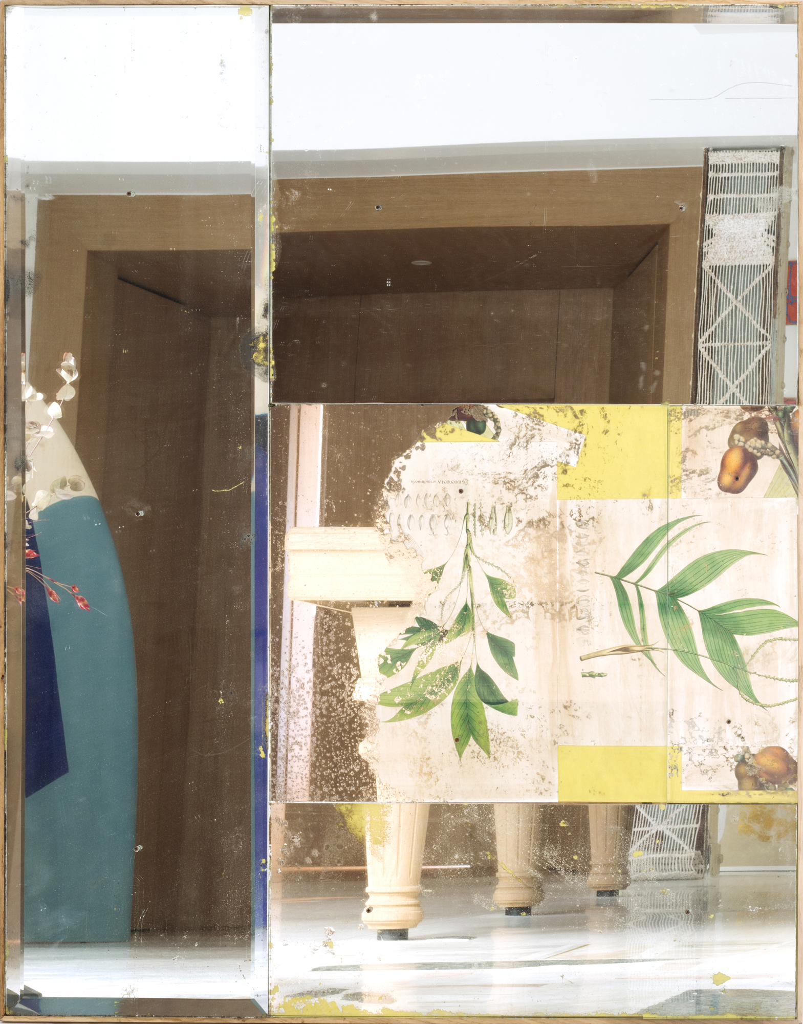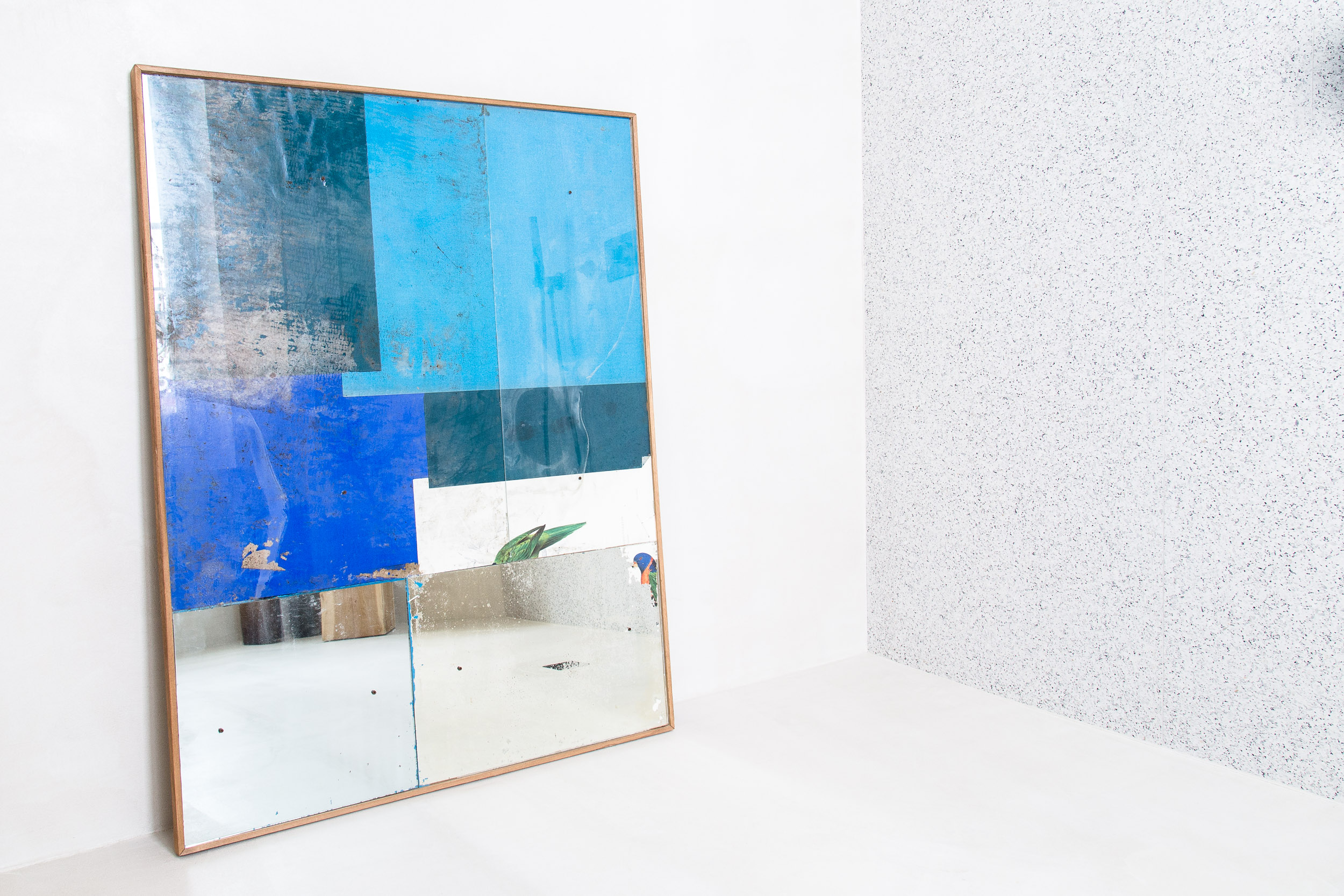 «Voyager, collecter, regarder, découper des miroirs pour créer un ensemble, pour qu’ils ne reflètent plus une image mais produisent une image. Comme une mise en scène de matière et matériaux que le temps ne peut effacer. On observe, on réfléchit au reflet, à la réalité. L’herbe folle envahit la pièce et la composition devient abstraction. »