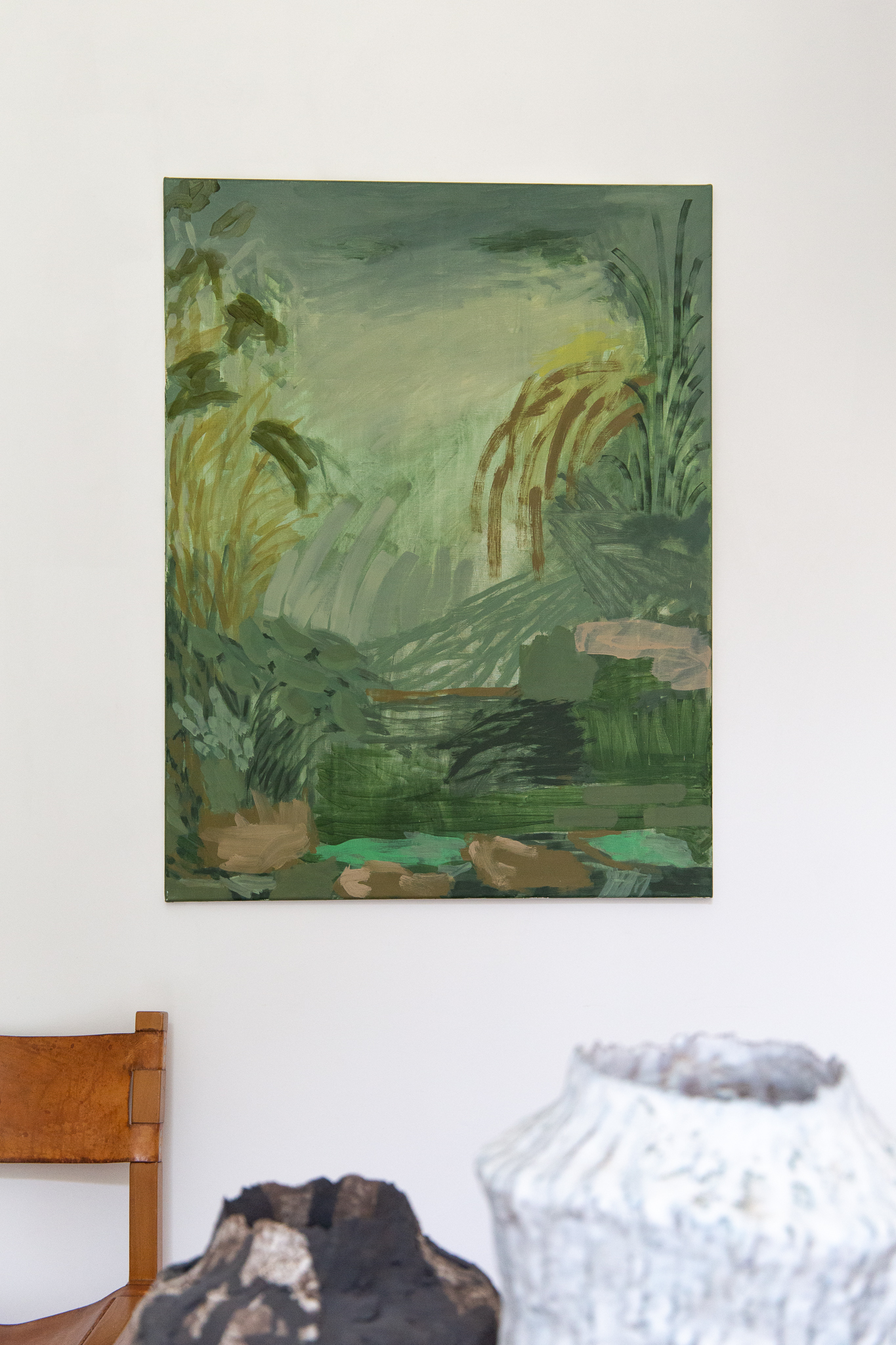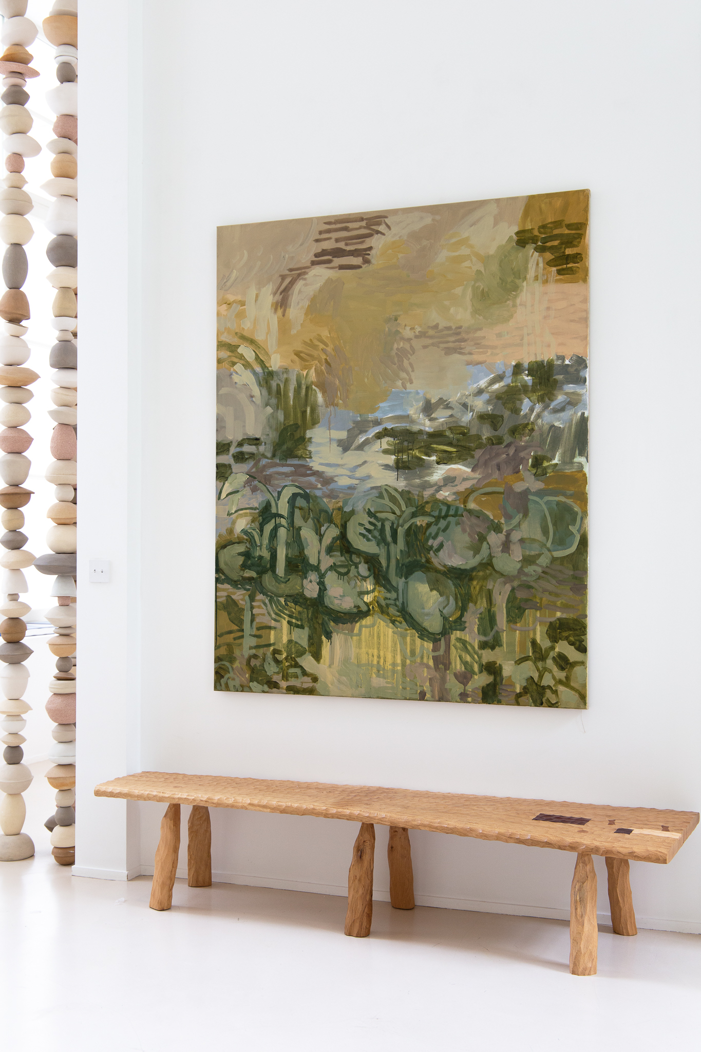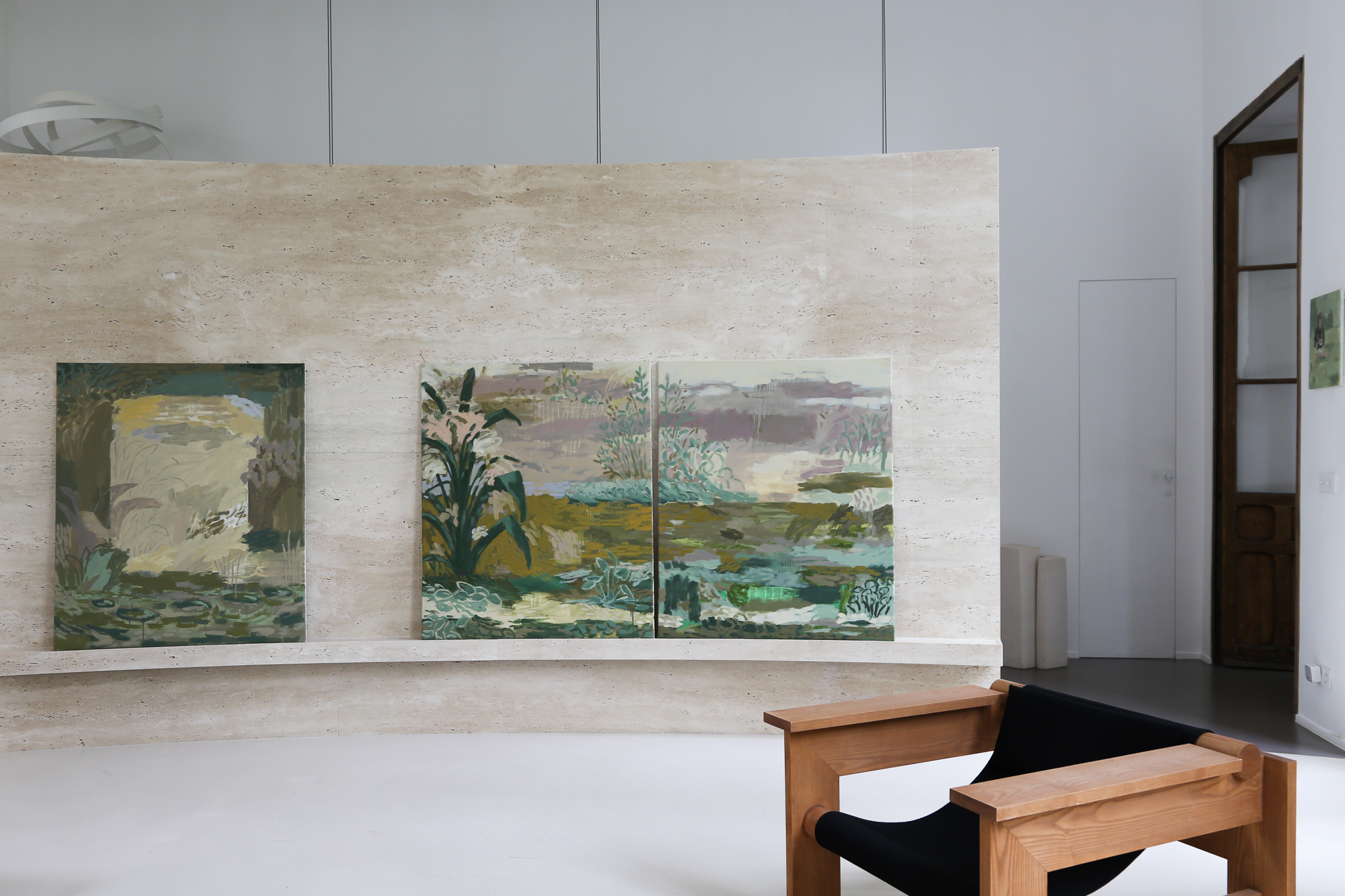 Ça tient à presque rien, cette peinture quasi défaite, parfois, où les touches se rencontrent juste assez pour faire encore forme. L’abstraction est là, au bord du paysage, comme un pas de plus vers ce que la fenêtre découvre. Il s’agit de lâcher prise, de sortir du dualisme occidental dans lequel l’esprit, toujours, a la main sur le corps. Il s’agit d’aller, par la peinture comme acte, vers la dépossession choisie de soi et du monde.