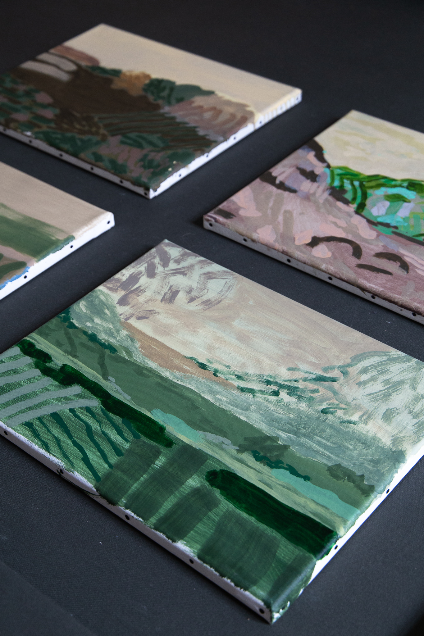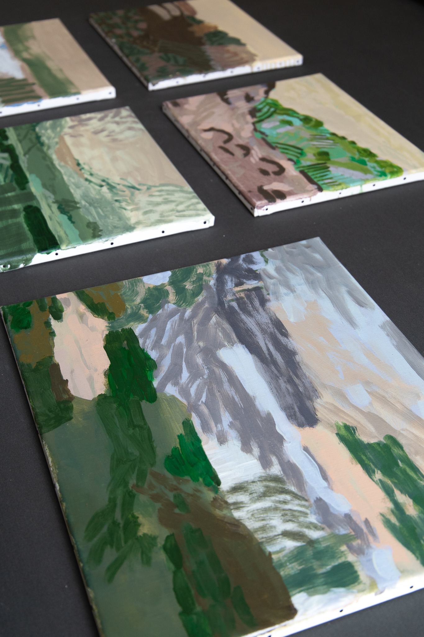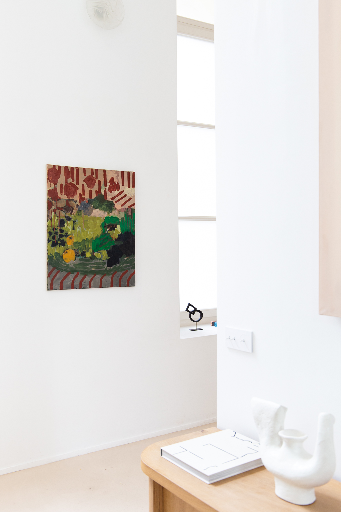 Ça tient à presque rien, cette peinture quasi défaite, parfois, où les touches se rencontrent juste assez pour faire encore forme. L’abstraction est là, au bord du paysage, comme un pas de plus vers ce que la fenêtre découvre. Il s’agit de lâcher prise, de sortir du dualisme occidental dans lequel l’esprit, toujours, a la main sur le corps. Il s’agit d’aller, par la peinture comme acte, vers la dépossession choisie de soi et du monde.