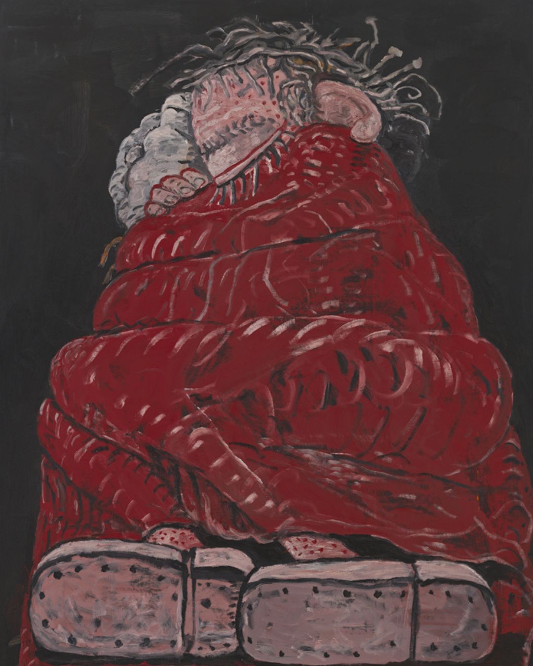 La peinture devient plus franche, moins décorative. Elle parle de ce qui dérange, de ce qui pèse : la violence, le racisme, la peur. Elle montre aussi l’absurde du quotidien, ce côté un peu drôle malgré soi qui glisse dans les images.