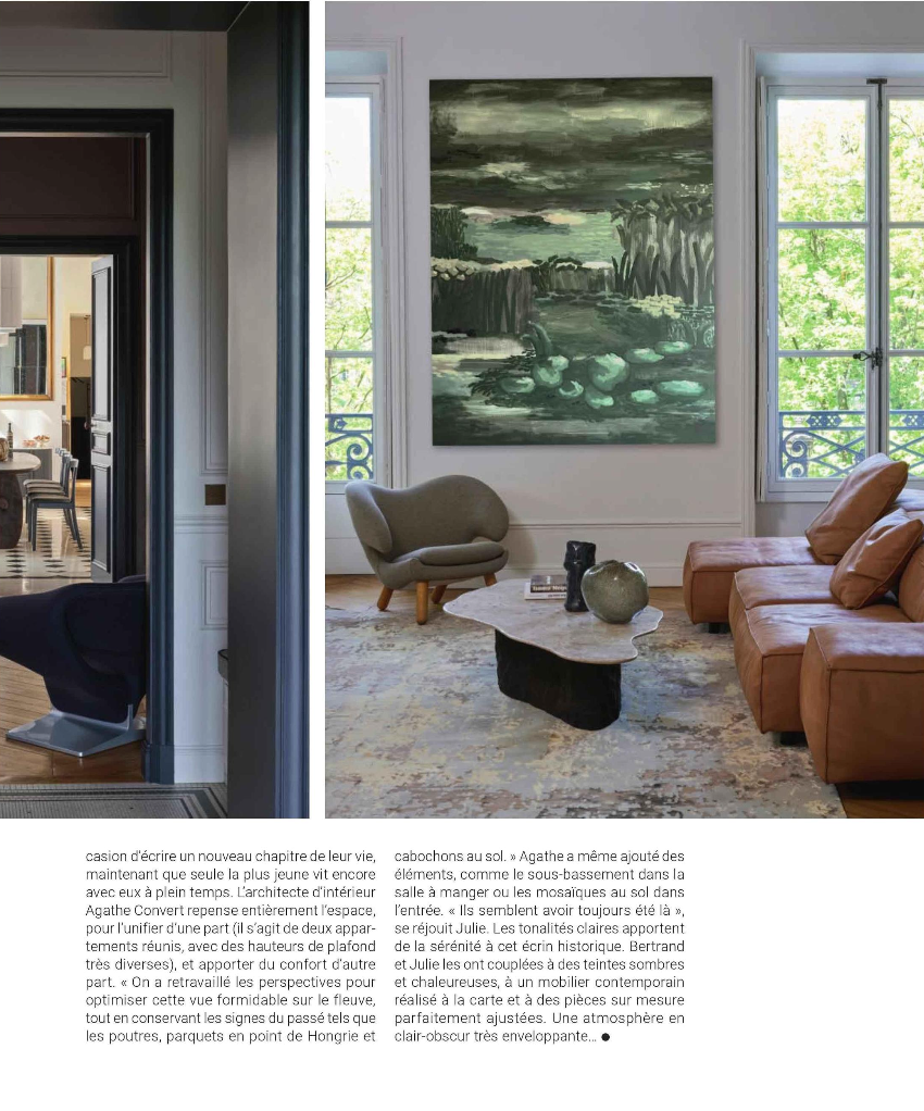 Nous remercions chaleureusement Marie Claire Maison pour cette belle mise en lumière, au cœur de leur article consacré à l’appartement réinventé par Agathe Convert. C’est un plaisir de voir notre univers s’inscrire dans un projet aussi sensible et chargé d’histoire.
