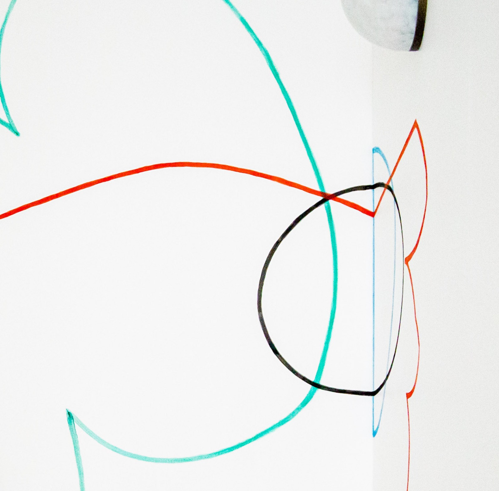 Le travail de Pola Carmen est comme un cheminement : ses tracés, aux fins incertaines, avancent, hésitent, parcourent le mur pour créer une trame plus ou moins dense. « Possibles » est une réflexion autour du trait, lignes d’horizons qui relient les points de fuites, lignes de vies mêlées à la couleur. Pola Carmen nous invite à voir la beauté du monde dans sa complexe simplicité : des traits et de la couleur.