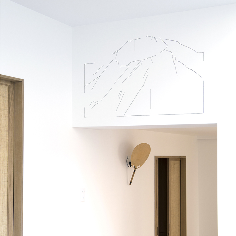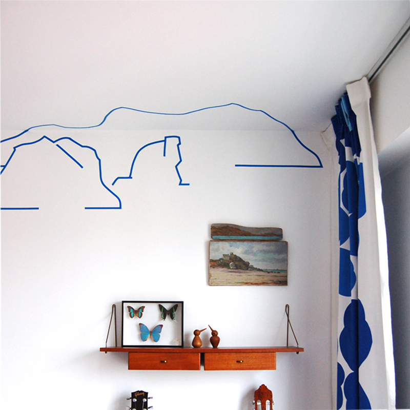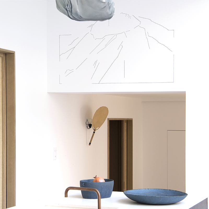 Que pouvez proposer Tanguy Tolila comme intervention à un collectionneur napolitain ? Il choisit déjà un sopraporte, une tradition italienne de décor au-dessus des portes. Le motif sera le Vésuve : volcan magnifique et fier qui fait face à Naples. La ligne fameuse de l’artiste, un graphisme simple, évident et équilibré.