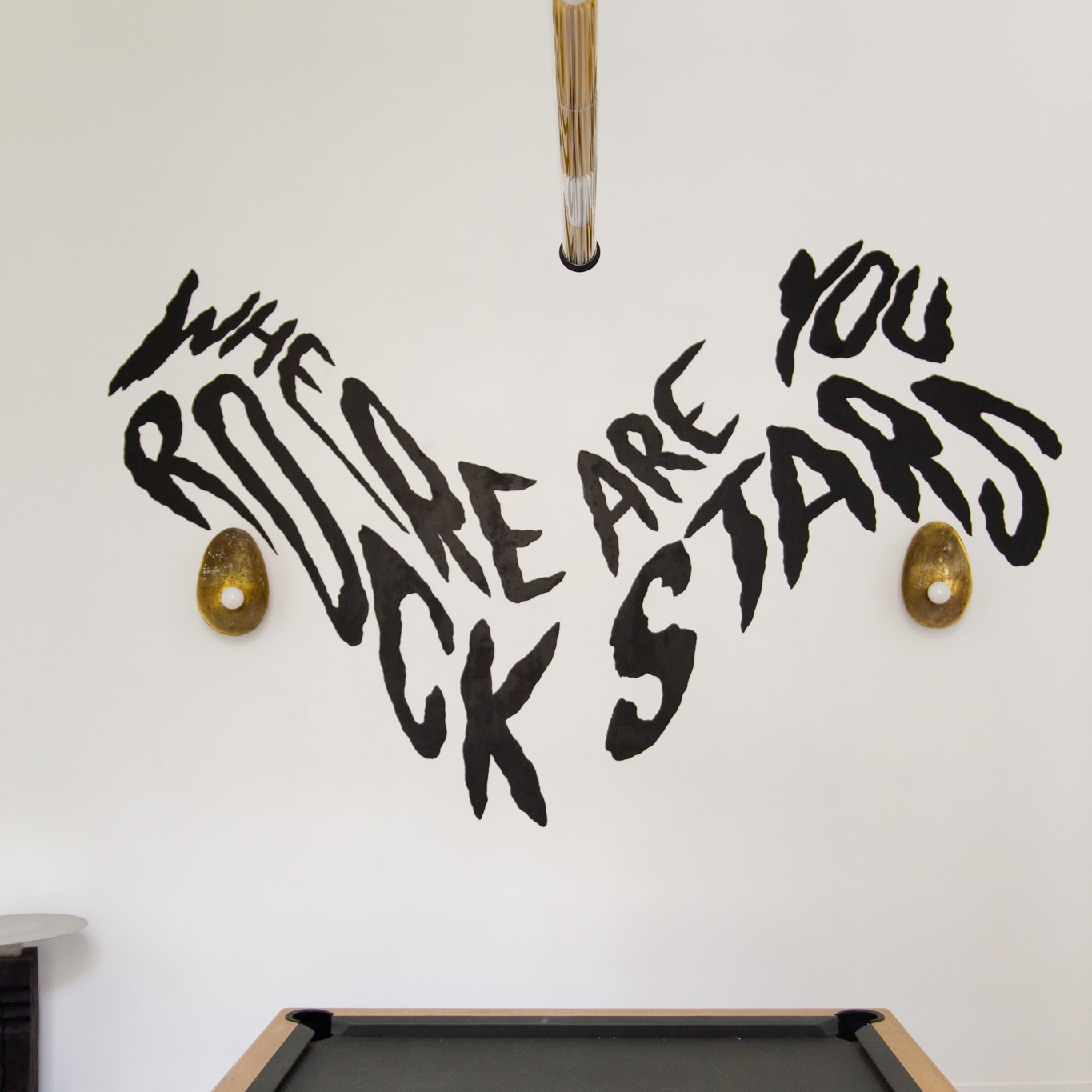 Pour cette intervention in situ, Léo Dorfner réalise un grand écrit mural, déployé comme un geste calligraphique brut et instinctif.