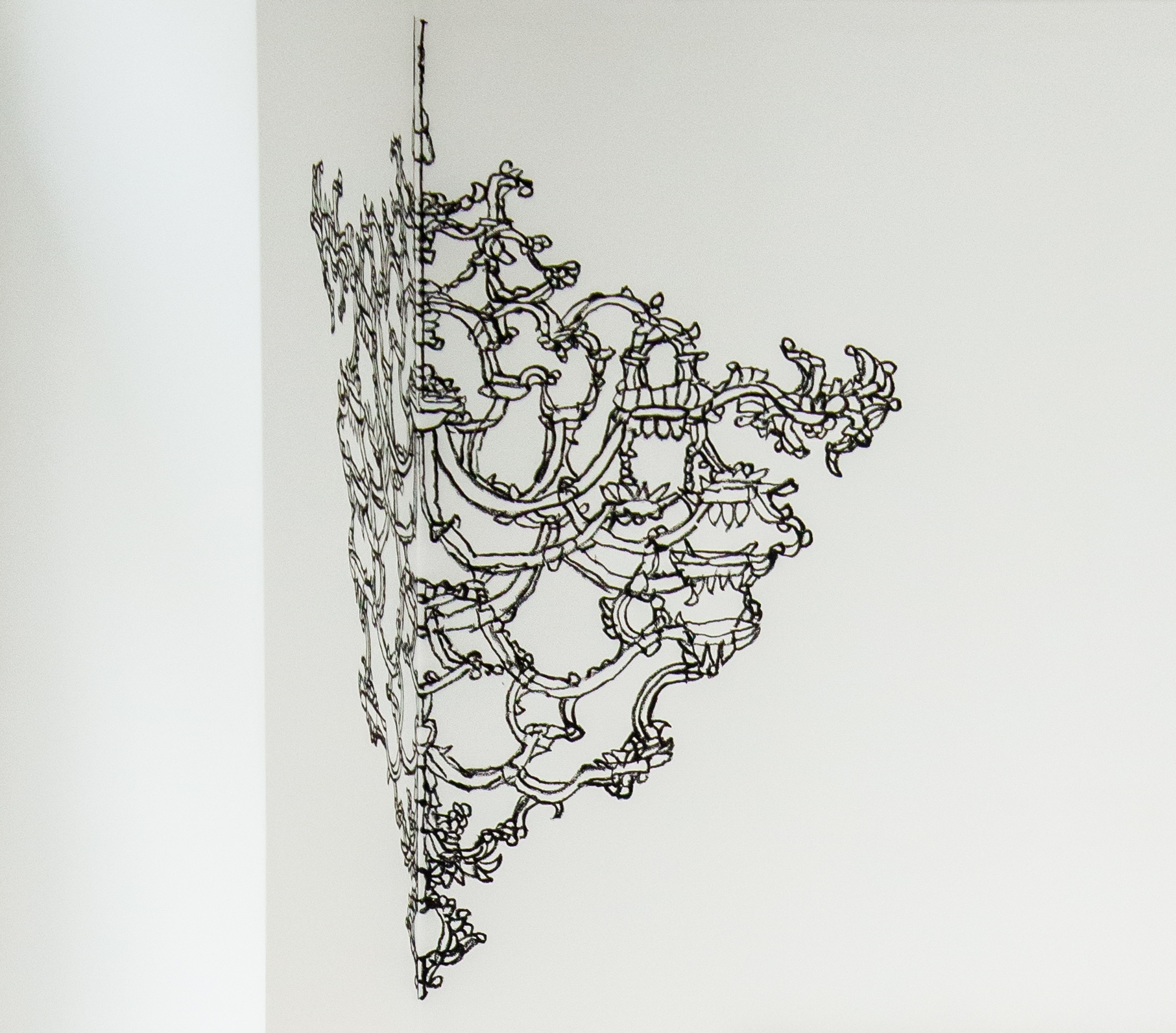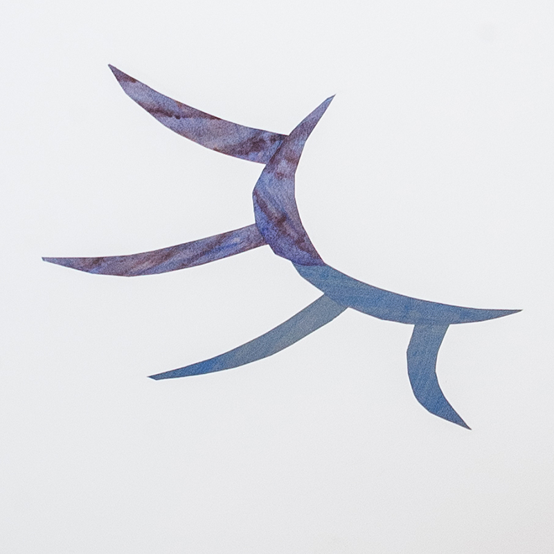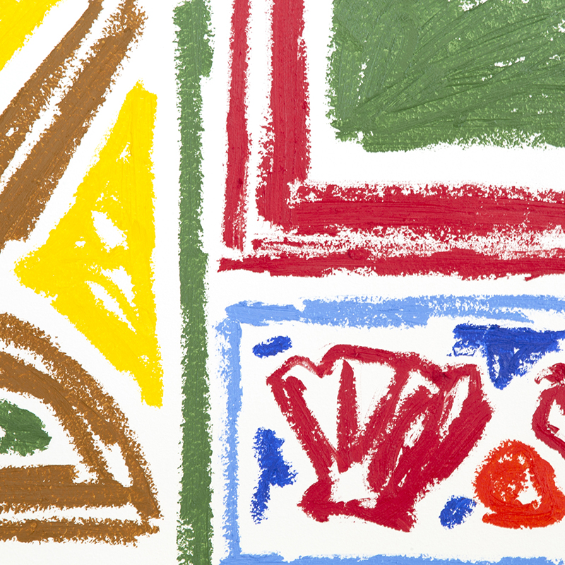 L’artiste joue à cache-cache avec le spectateur. Les formes se croisent, se recouvrent, se cachent, se montrent. Selon où nos yeux commencent, on éprouve différemment, les formes, les traits et les couleurs, jusqu’à trouver l’endroit précis où la forme apparaît.