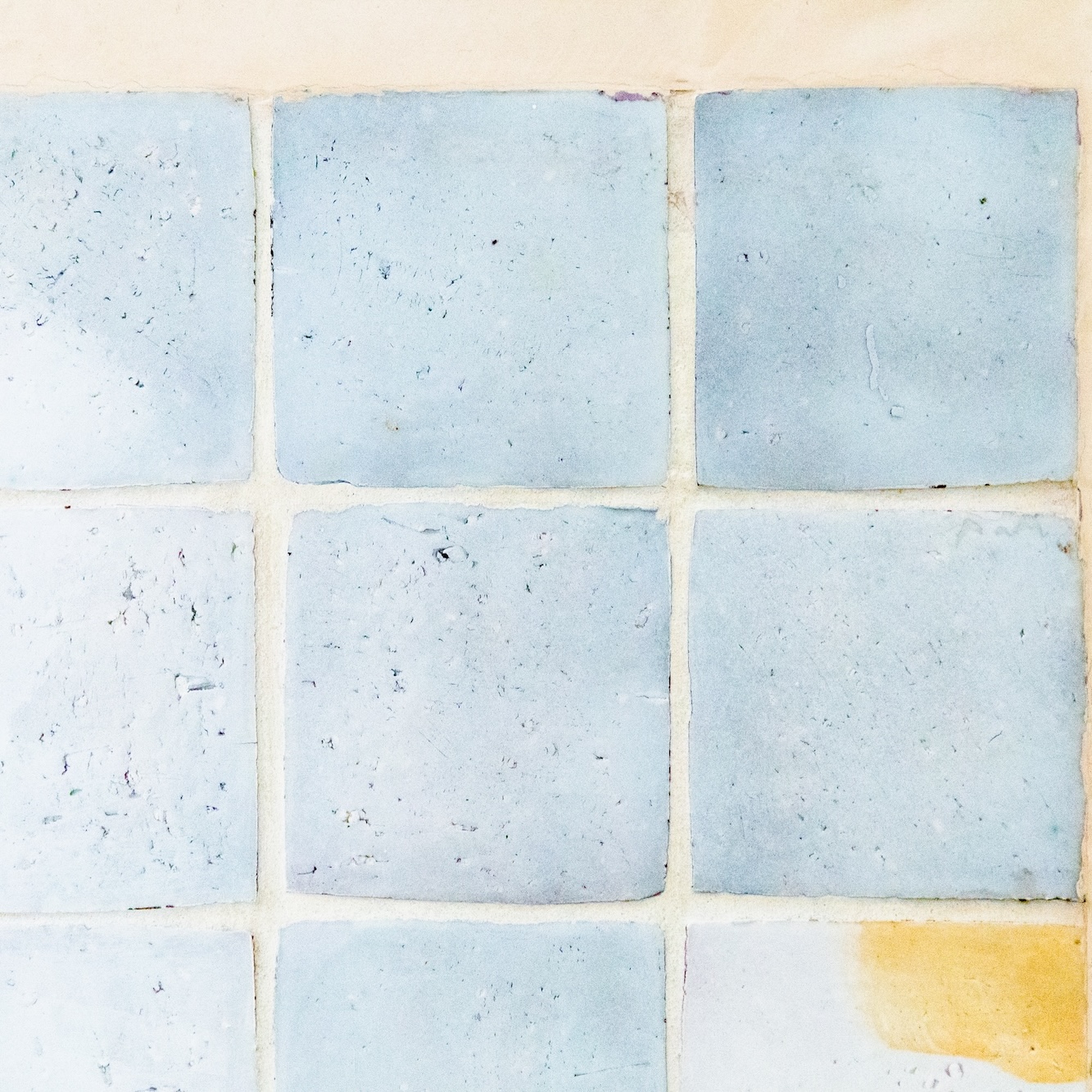 Sous les pas, un fragment de sol devient œuvre : un ensemble de carreaux uniques, façonnés un à un par l’artiste Héloïse Bariol.