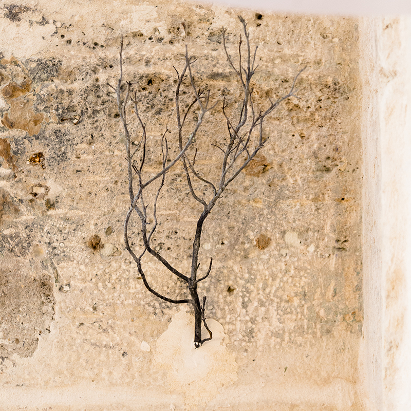 À partir d'un moulage en bronze d'une jeune branche, Nadine de Garam travaille le mur avec poésie et délicatesse.